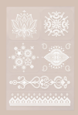 This pack includes 6 patches. Each patch features its own unique ornamental mosaic-inspired artwork in solid white on a clear backing made from 100% recycled PET.